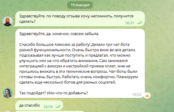 Обратиться к боту можно одним кликом в привычном мессенджере — взаимодействовать с компанией легко и удобно.